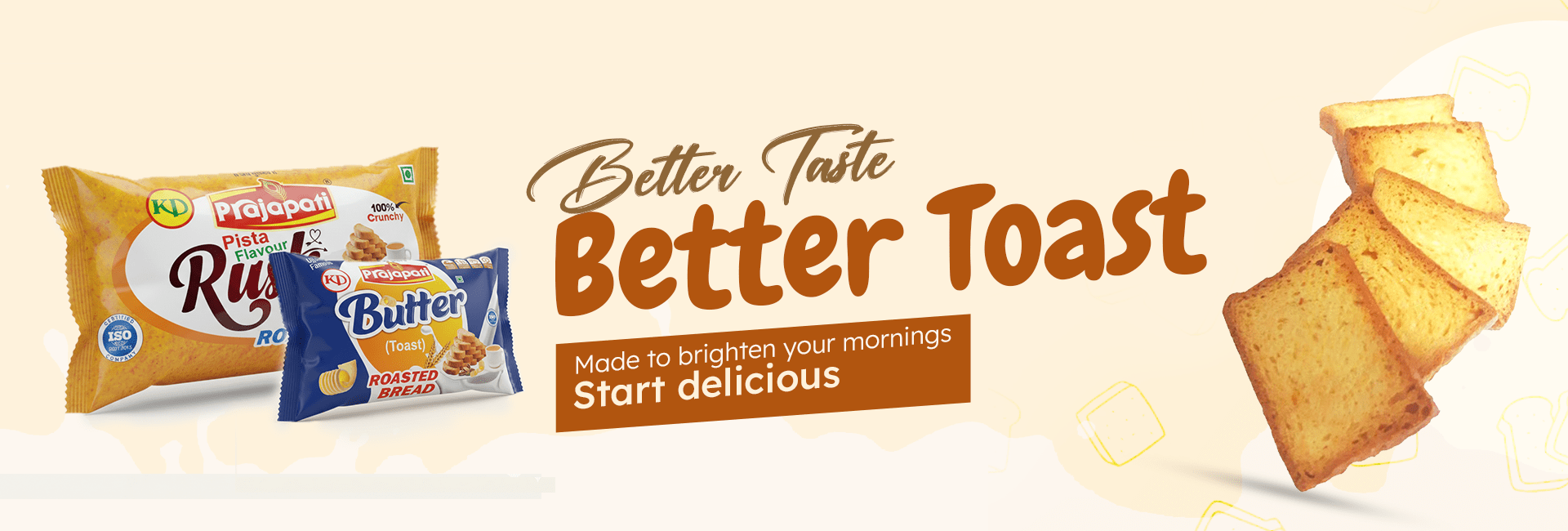 At K D Prajapati Bakery, every toast is made with care, using time-tested recipes and the finest ingredients to deliver rich taste and perfect crispness in every bite.